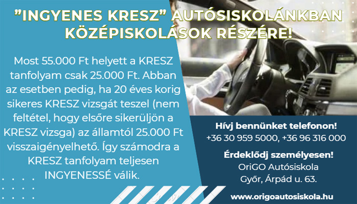 Sikeres KRESZ vizsga után most állami támogatás vehető igénybe, mely alapján 25.000 Ft-ot visszaigényelhetsz. Bővebb információt itt találsz. A kérelem innen letölthető.